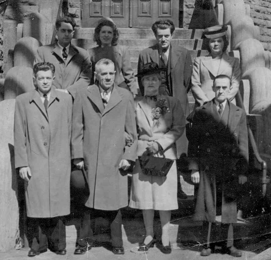Mariage d'Albert Cliche et de Sophie Borgia à St-Jean-Baptiste de Québec le 4 mai 1946. À la droite de Sophie, Adélard Gauvin, époux de Juliette Ouellet.