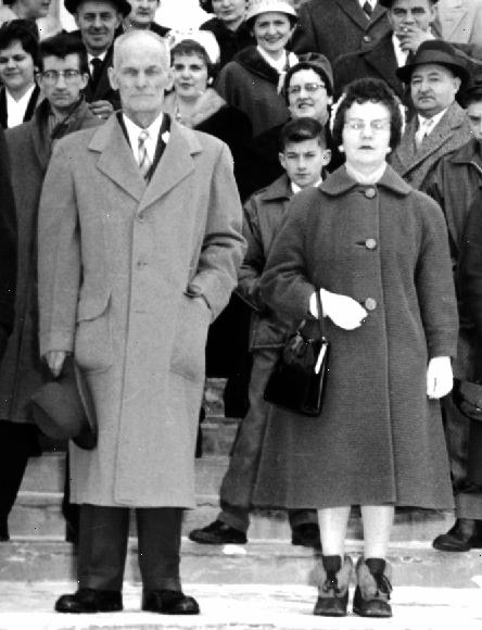 Gédéon Boucher et Joséphine Veilleux au mariage de leur fils Roland avec Marie-Marthe Garneau le 31 décembre 1960.
