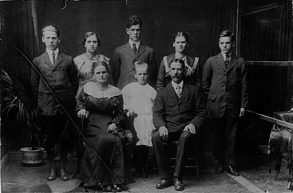 Léandre Moisan, Rosalie Linteau et leurs six enfants: Rose-Aimée, Patrice, Emma, Antoinette, Laurent et Marcel.