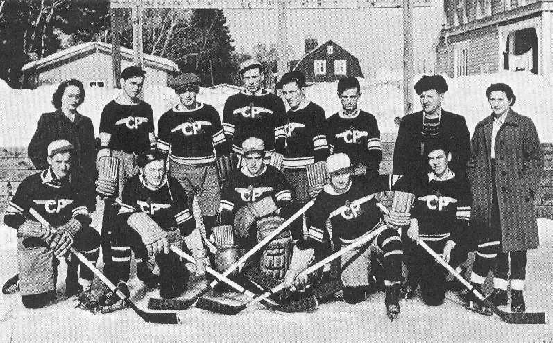 L'équipe de hockey de Chute-Panet: Fernando Borgia (premier en avant) , Jean-Charles Borgia (4e en arrière) et Paulo Borgia (6e en arrière)