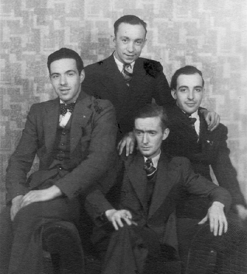 Valère Noreau (à gauche), Jeffrey Germain (debout au centre), Wilfrid Walsh (assis au centre) et Raymond Beaumond (à droite).