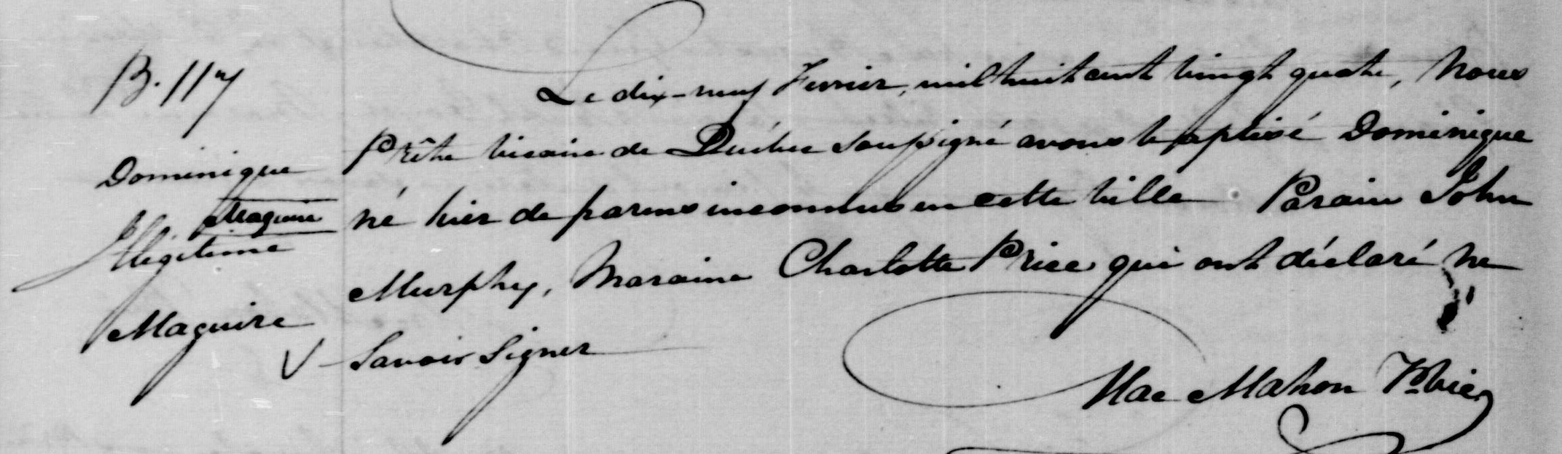 Registe de la paroisse de Notre-Dame de Québec du 19 février 1824.